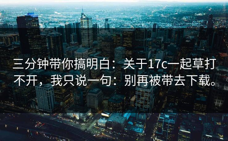 三分钟带你搞明白:关于17c一起草打不开,我只说一句:别再被带去下载。