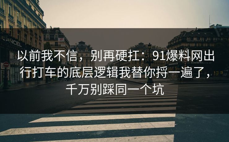 以前我不信,别再硬扛:91爆料网出行打车的底层逻辑我替你捋一遍了,千万别踩同一个坑
