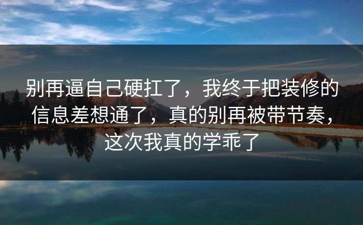 别再逼自己硬扛了,我终于把装修的信息差想通了,真的别再被带节奏,这次我真的学乖了