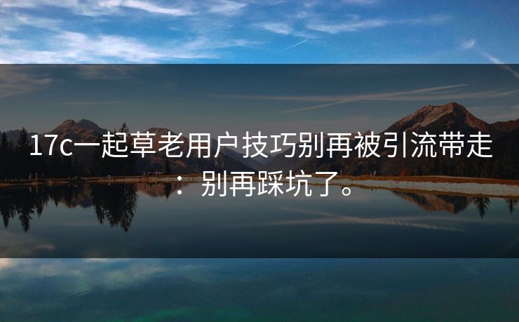 17c一起草老用户技巧别再被引流带走:别再踩坑了。