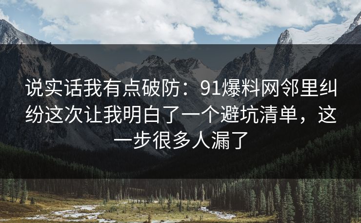 说实话我有点破防:91爆料网邻里纠纷这次让我明白了一个避坑清单,这一步很多人漏了