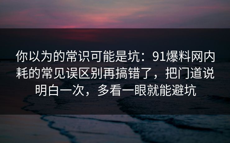 你以为的常识可能是坑:91爆料网内耗的常见误区别再搞错了,把门道说明白一次,多看一眼就能避坑