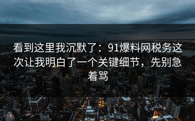 看到这里我沉默了:91爆料网税务这次让我明白了一个关键细节,先别急着骂 那天在91爆料网上看到一个税务投诉帖,本能跟着愤怒、跟着声讨,文章一行行往下看,越看越沉默。不是因为我不生气,而是因为贴子里遗漏了一个很多人忽略、却决定胜负的关键点:税...
